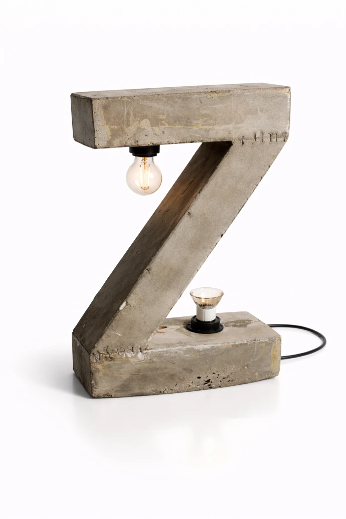 Lampe en béton, aux lignes géométriques affirmées, conçue comme un objet lumineux décoratif pour un éclairage d’ambiance.