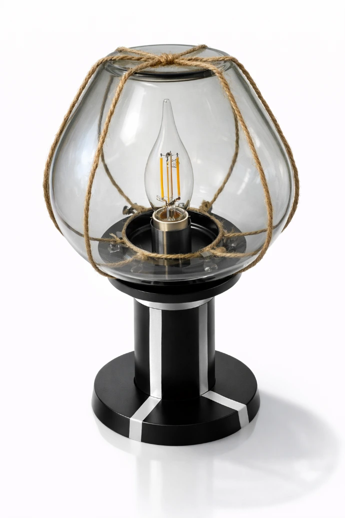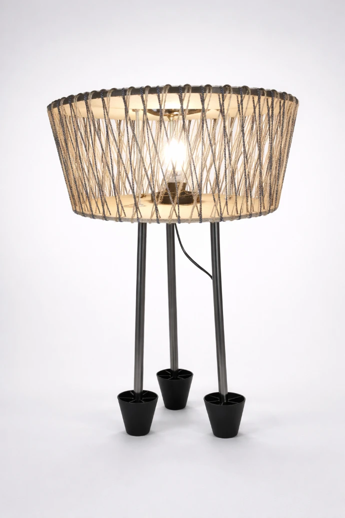 Lampe d’appoint verticale, issue de matériaux revalorisés, destinée à un éclairage d’ambiance doux.